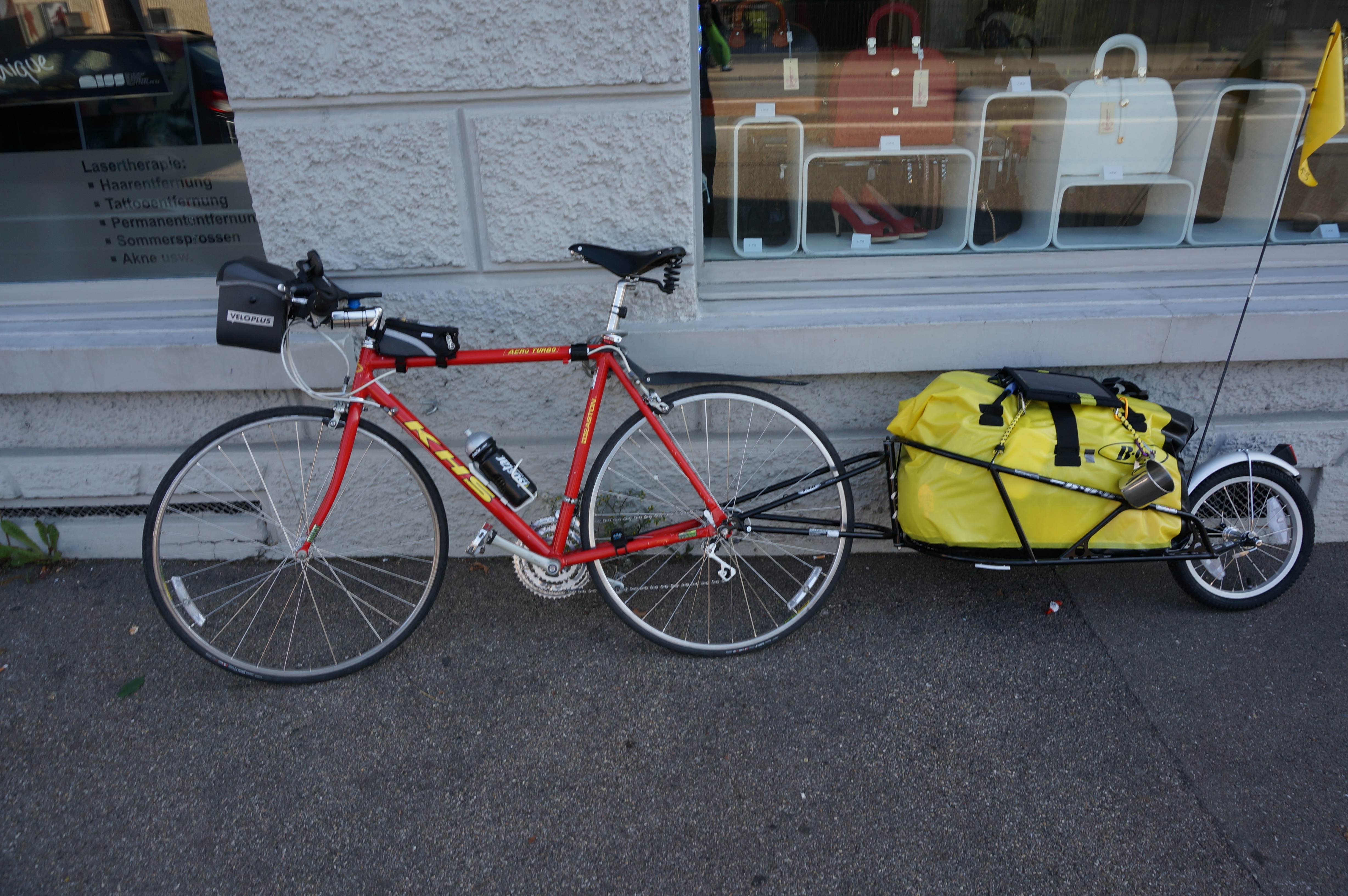 Ogni opzione, chiaramente, ha i propri vantaggi e svantaggi, e non si può dire quale é la migliore. Importante che si scelga il proprio sistema a seconda delle funzioni e gusti. Nel mio caso, non avendo la possibilità di fissare un portapacchi in maniera semplice sul telaio della mia bici da corsa, ho optato per il carrello da rimorchio monoruota, BOB Yak prodotto in USA.