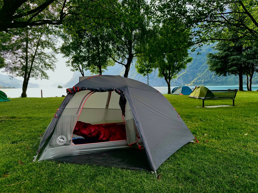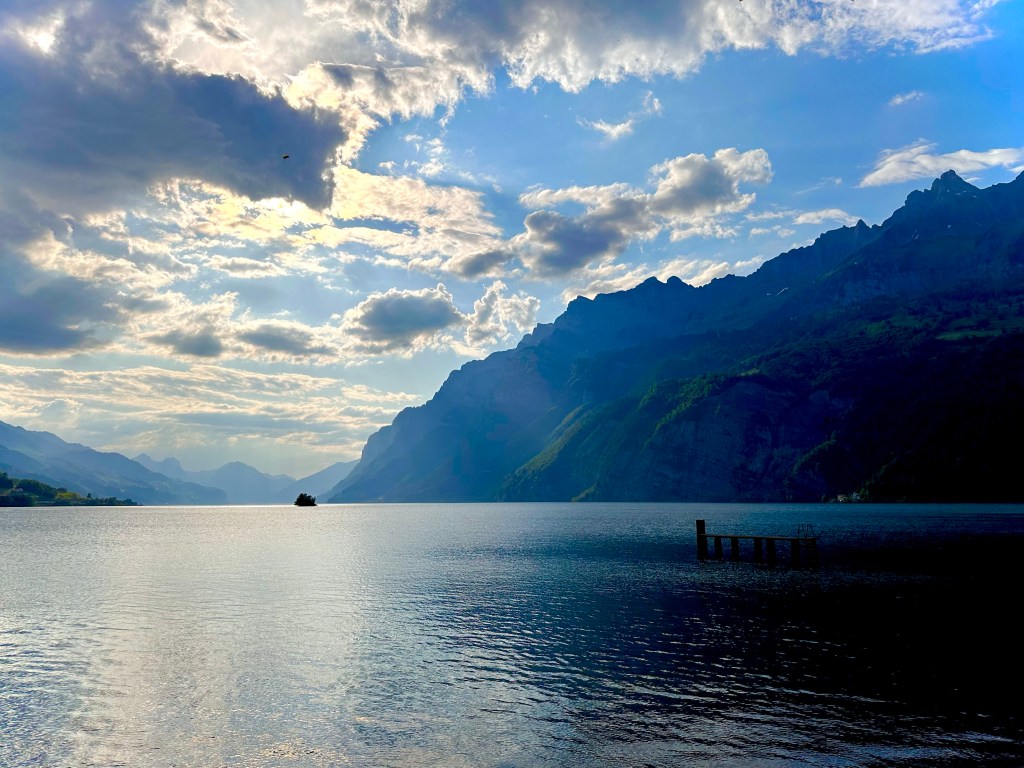 Sveglia di buon`ora, mi bevo un caffè e inizio a impacchettare tutto al bagaglio. Vista la mole di materiale, faccio un po’ di fatica a riempire le sacche. Sono costretto a sfruttare ogni spazio disponibile. Con la speranza di non aver dimenticato niente, prendo la bici e parto per una nuova avventura. Da Dietikon mi dirigo verso la traffica e poco biker friendly Zurigo. Attraversata la città arrivo su una bella ciclopista dell’oberaland Zurighese. Non c‘è traffico e pedalo tranquillo tra campi e boschi. Le preoccupazioni spariscono e inizio a godermi il viaggio. Verso le due del pomeriggio, faccio una piccola sosta per mangiare un panino. Con nuove energie riparto verso il Canton Glarona, per poi andare verso Walensee e terminare la tappa a Walenstadt. Ho percorso diverse volte questo tragitto, ed è sempre molto bello, in particolare la parte sul Walensee. La ciclopista fa parte dell‘eurovelo 6 costeggia il lago Walensee. Le sue acque hanno colore turchese e le montagne che lo circondano sono sempre molto suggestive. In particolare la sera offre dei tramonti spettacolari. In tardo pomeriggio concludo la tappa e arrivo a Walenstadt. Prendo posto al camping sul lago. Disfo i bagagli e monto la tenda. Soddisfatto del lavoro, vado a farmi una doccia. Poi, siccome no ho troppa voglia di cucinare, metto a bollire dell`acqua per un pranzo in busta. Nel frattempo, con sorpresa, mi scrive un vecchio collega di lavoro. Per via del militare, anche lui si trova in paese. Con piacere viene a farmi visita al camping. Ci beviamo due birre e parliamo del più e del meno. Gli propongo di guardare la finale di UEFA Cup insieme, ma rifiuta perché deve tornare in caserma. Mi guardo la partita e purtroppo il risultato finale, rovina un po’ l’ottima giornata trascorsa. Vado a dormire con malumore, poi pero mi consolo pensando a quanto sono felice di essere partito per una nuova avventura.