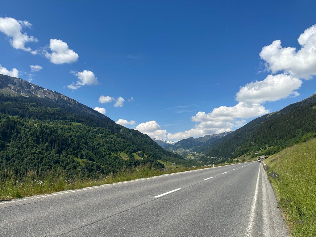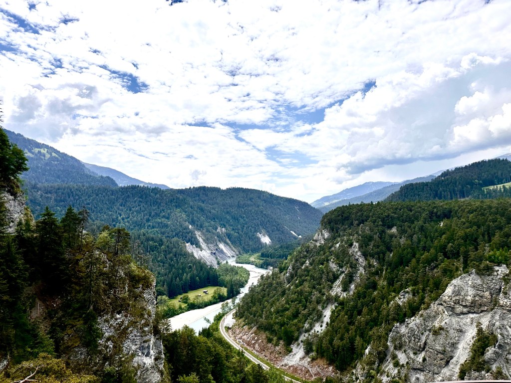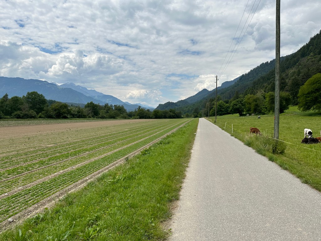 Dopo aver passato una notte un po’ nervosa, mi sveglio lo stesso presto e abbastanza riposato. Inizio la giornata con ciò che sarà la mia routine per le prossime settimane. Caffè, smontare la tenda e impacchettare il tutto il materiale. Verso le nove e mezza carico la bici con le borse e parto in direzione di Coira. Anche qui niente di nuovissimo, percorro una parte dell`ev6 che costeggia il Reno, per poi arrivare Bad Ragaz dove in particolare la ciclopista attraversa dei campi di golf. Dalla bella cittadina di Coira si prende per Surselva. La strada vecchia è sempre molto suggestiva. Dopo una prima salita si arriva a un punto di visto magnifico. Da qui si può ammirare la valle con il famoso canyon del Reno. Continuo per la strada alta e attraverso Versam e Valendas, piccoli villaggi tipici della regione. Molto fiabeschi. A pomeriggio inoltrato arrivo a Ilanz dove mi fermo per fare quattro spese e godermi un gelato. Riparto verso Sevgein, mi aspetta ancora una salita da pedalare. Quasi sfinito mi riesco ad arrampicare su per il villaggio e qui finisce la tappa. Prendo alloggio da mio figlio Florian e sua madre Iris. Ceniamo insieme e passiamo un`ottima serata con varie discussioni.
