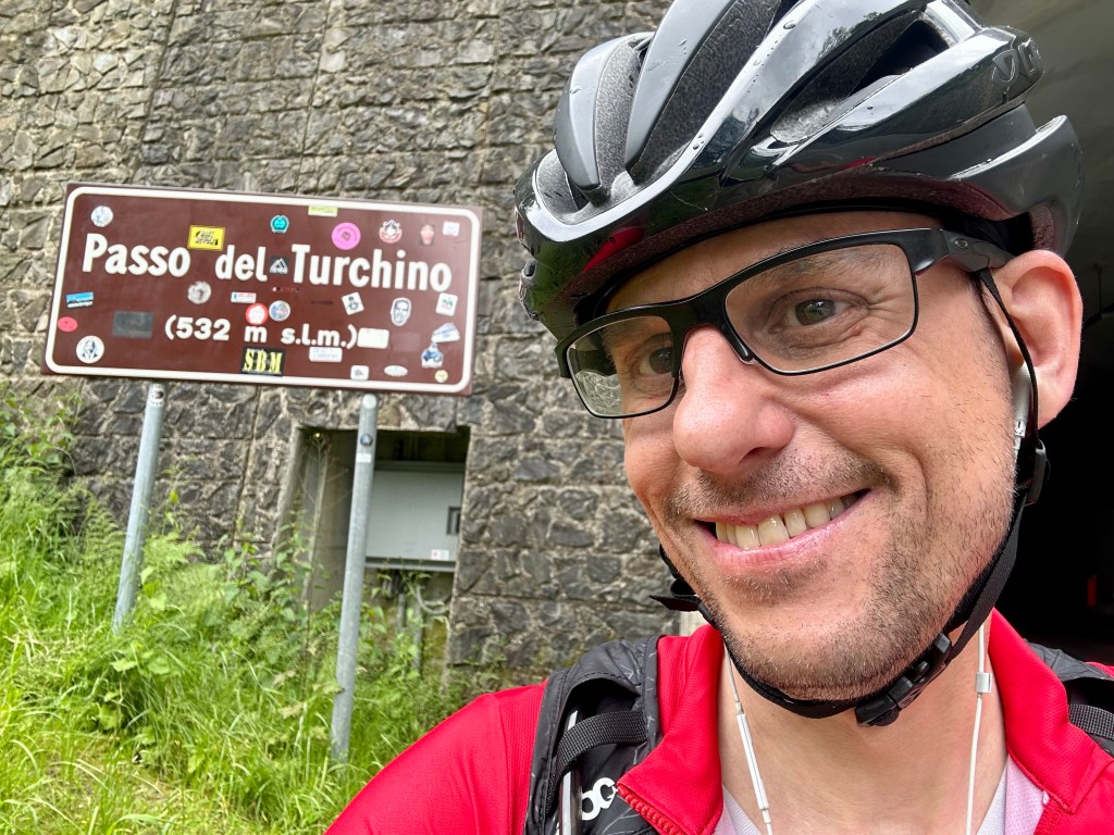La tappa di oggi é praticamente il percorso della Milano-Sanremo 2023. La traccia gpx originale é stata scaricata da Strava, dal cliclista svizzero che seguo, Silvan Dillier. L’unica differenza é che mi fermerò a Varazze visto che poi dovrò traghettarmi per la Corsica. Parto di buon ora con il cielo coperto e il tragitto risulta essere ancora più monotono e noioso. Una dritta e lunga strada che attraversa il piatto piano padano. Sono comunque fortunato visto che ho quasi sempre il vento in poppa. Arrivo a Ovada, un temporale mi sorprende e mi bagno tutto. Riesco a ripararmi prendendo posto in una terrazza coperta di un ristorante. Mangio degli ottimi gnocchetti, bevo una cochina, riprendendo così un po’ di forza. Nel frattempo la pioggia cessa e rimetto sulla strada, direzione passo del Turchino. La salita é abbastanza lunga ma non difficile, anche perché le pendenze non sono troppo elevate. Arrivato in cima, faccio sodisfatto, la tipica foto rituale del cartello con l’altimetria. Al di la del Turchino si fa vedere il sole e il mare. Prendo la bella e lunga discesa che mi porta a Genova-Voltri e da qui mi metto sulla via Aurelia . Con la vista sul mare mi godo i pochi kilometri restanti. Verso le diciotto arrivo Varazze che conosco bene. Ho soggiornato diverse estati con i miei figli da mio grande amico David e dalla mia carissima amica Elena, all’hotel Ines. Purtroppo la gerenza é cambiata, Elena però é rimasta, e quindi decido di fermarmi all’albergo per due notti.