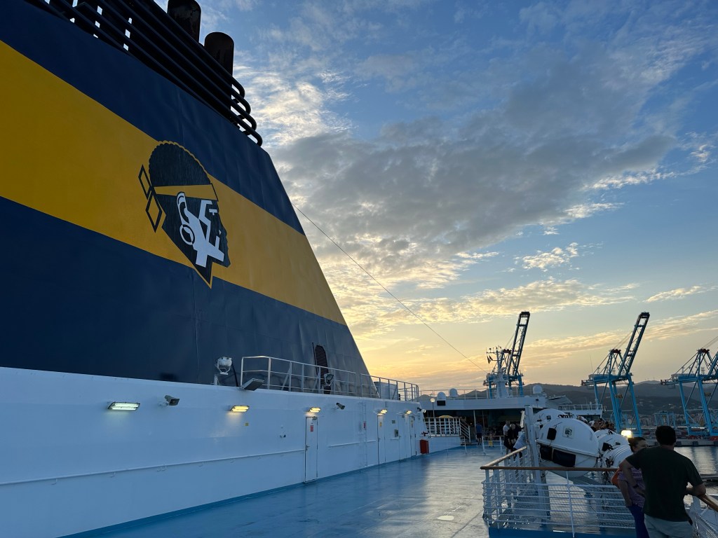 Siccome l’imbarco per il traghetto é previsto per le ventuno, approfitto della giornata per riposarmi ancora un po’. Poi , nel tardo pomeriggio, impacchetto il tutto e mi faccia un pedalata gentile fino a Savona. Via sto che é ancora presto, visito la fortezza del Priamar, faccio un aperitivo e mangio qualcosa. Come programmato alle nove m`imbarco, trovo un posticino per la bici vicino a un tir e prendo posto in cabina. Vado sul ponte per fare qualche foto, farmi uno svapo e bermi una biretta. Nel salone trasmettono la finale di conference, e la guardo non troppo interessato. Finita la partita vado a dormire. Faccio fatica ad addormentarmi per via del rumore dei motori della barca. Riesco comunque a dormire un po’.
