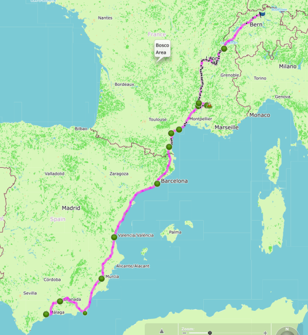 Un mese di transumanza in bici.Dopo una lunga attesa, finalmente sono pronto. Domani 3.5.2017, parto verso Sud. Il mio percorso di 2000km ca. inizia da Zurigo, per andare verso Ginevra, dove prendero' la ciclopista del Rodano. Poi continuerò verso i Pirenei, in seguito verso Barcellona, Valencia, San Jose. Da San Jose prendero' per Grenada, attraversando... Continua a leggere →